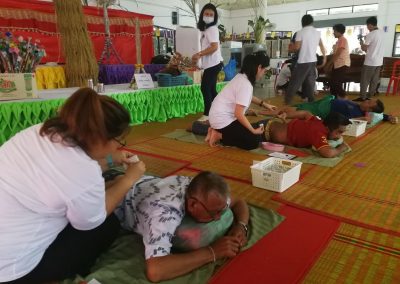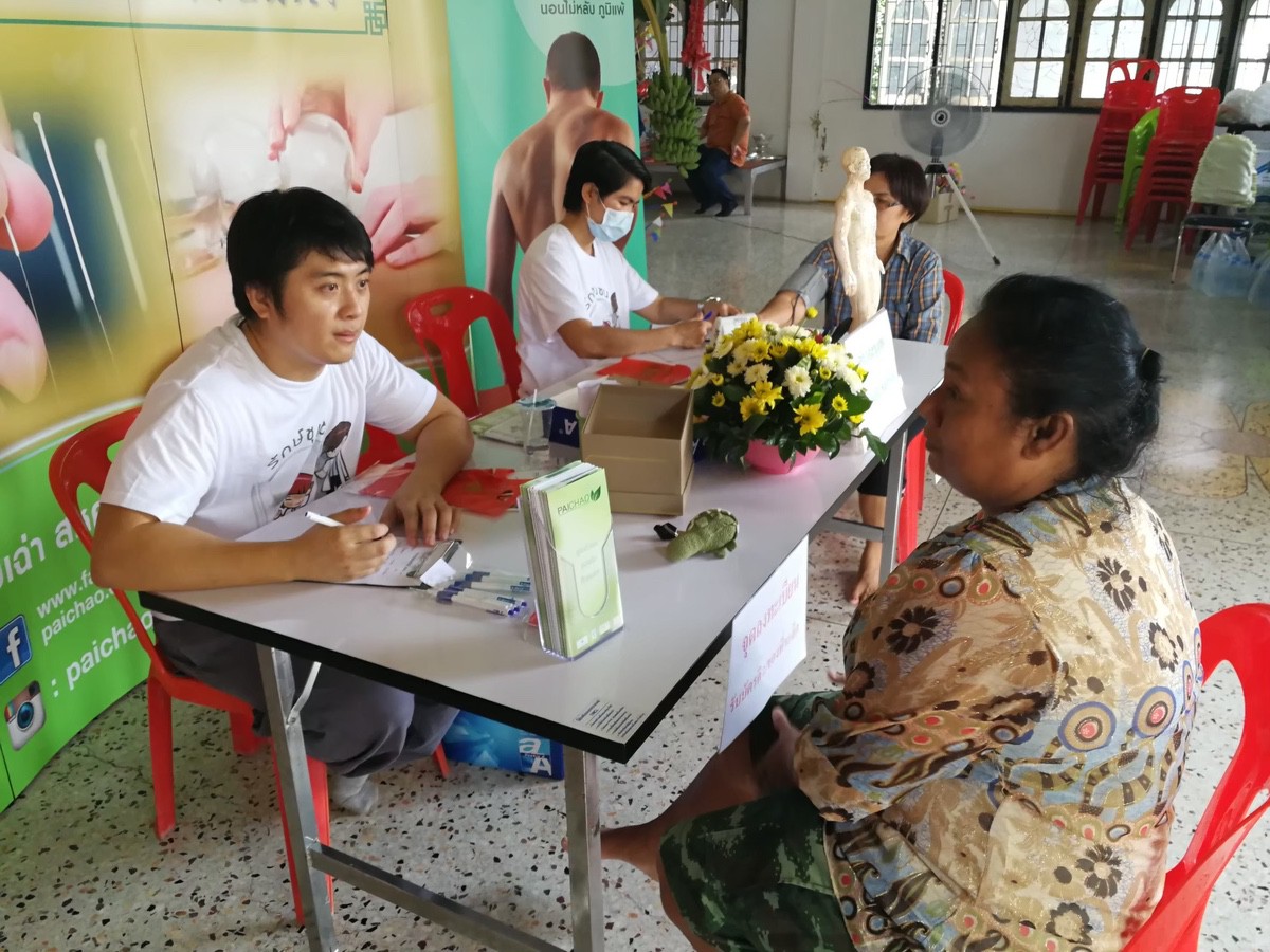 หลังจากทอดกฐินแล้ว ทางคุณหมอและทีมงานของ ไป๋เฉ่า สหคลินิก ร่วมใจกันตรวจแมะ และให้ความรู้กับการดูแลสุขภาพเบื้องต้นก่อนถึงมือแพทย์ พร้อมทั้งรักษาตามศาสตร์การ